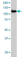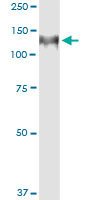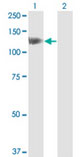 Western blot of HIP1 expression in transfected 293T cell line by HIP1 monoclonal antibody, clone...