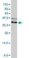 DNAJA4 monoclonal antibody (M01), clone 4B4-1F2 Western blot of DNAJA4 expression in HeLa.