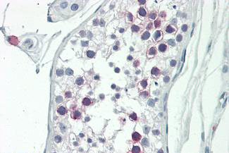 Anti-SLC22A16 antibody IHC staining of human testis.