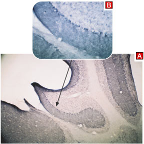 Expression of TRPC3 in mouse cerebellum Immunohistochemical staining of mouse cerebellum using Anti-TRPC3 antibody ( APR13807G) (A). Immunoreactivity appears in the molecular layer and in Purkinje cells (B). |