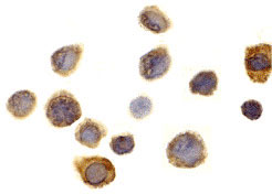 Immunocytochemistry of SIRP alpha in THP-1 cells with SIRP alpha antibody at 1 μg/mL. |