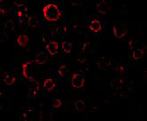 Immunocytochemistry of MADD in human spleen tissue with MADD antibody at 10 μg/mL.