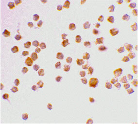 Immunocytochemistry staining of K562 cells using Caspase-9 antibody at 2 μg/mL.