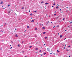 Immunohistochemistry of ARC in human heart tissue with ARC antibody at 5 μg/mL.