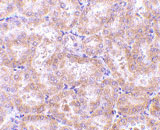 Immunohistochemistry of RIP3 in rat kidney tissue with RIP3 antibody at 5 μg/mL.