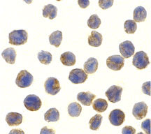 Immunocytochemistry of NAK in MOLT4 cells with NAK antibody at 10 μg/mL. |