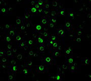 Immunofluorescence of IL-22 receptor in HepG2 cells with IL-22 receptor antibody at 10 μg/mL. |