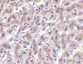 Immunohistochemistry of OMI in human liver tissue with OMI antibody at 2 μg/mL.