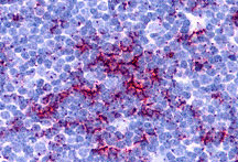 Immunohistochemistry of TLR8 in human thymus tissue with TLR8 antibody at 5 μg/mL. |