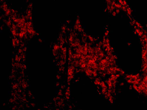 Immunofluorescence of OMI in human colon tissue with OMI antibody at 20 μg/mL. |