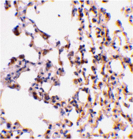 Immunohistochemical staining of mouse lung tissue using Bid antibody at 2 μg/mL.