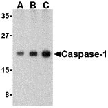 Caspase-1 Antibody: Caspases are a family of cysteine proteases that can be divided into the apoptotic and inflammatory caspase subfamilies. Unlike the apoptotic caspases, members of the inflammatory subfamily are generally not involved in cell death but are associated with the immune response to microbial pathogens. Members of this subfamily include caspase-1, -4, -5, and -12 and can activate proinflammatory cytokines such as IL-1β and IL-18. Caspase-1 was initially identified as an IL-1β-converting enzyme; later experiments revealed it to be a mammalian homolog of the C. elegans cell death gene ced-3 whose overexpression can induce apoptosis in fibroblasts.