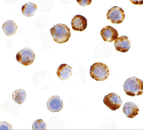 Immunocytochemistry of caspase-6 in MCF7 with caspase-6 antibody at 1 μg/mL.