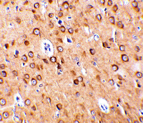 Immunohistochemistry of CTRP4 in rat brain with CTRP4 antibody at 10 μg/mL.