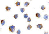 Immunocytochemistry of NGFR in A20 cells with NGFR antibody at 10 μg/mL. |