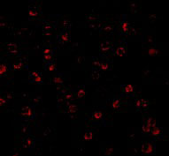 Immunofluorescence of APG7 in MCF7 cells with APG7 antibody at 20 μg/mL. |
