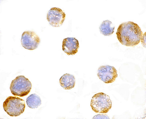 Immunofluorescence of TLR3 in El4 cells with TLR3 antibody at 10 μg/mL. |