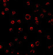 Immunofluorescence of TLR3 in K562 cells with TLR3 antibody at 2 μg/mL. |