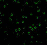 Immunofluorescence of TNFRSF14 in Raji cells with TNFRSF14 antibody at 20 μg/mL. |