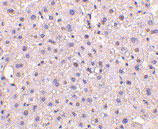 Immunohistochemistry of GAPDH in human liver tissue with GAPDH antibody at 10 μg/mL.