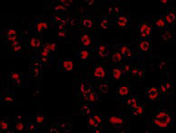 Immunofluorescence of GAPDH in HeLa cells with GAPDH antibody at 10 μg/mL. |