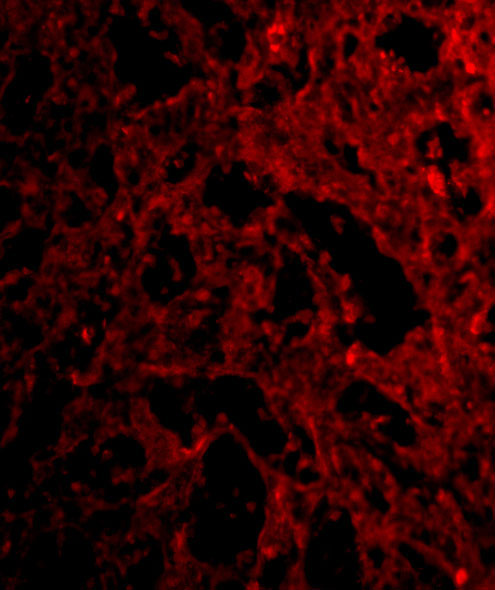 Immunofluorescence of RP105 in human spleen tissue with RP105 antibody at 10 μg/mL. |
