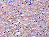 Immunohistochemistry of Clusterin in human brain tissue with Clusterin antibody at 10 μg/mL. |