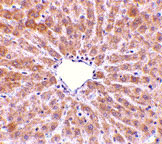 Immunohistochemistry of TIP47 in rat liver tissue with TIP47 antibody at 10 μg/mL.