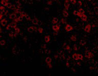 Immunofluorescence of TIP47 in Rat Liver cells with TIP47 antibody at 20 μg/mL. |