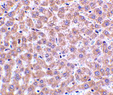 Immunohistochemistry of TIP47 in rat liver tissue with TIP47 antibody at 2 μg/mL. |