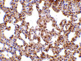 Immunohistochemistry of TRPC6 in mouse lung tissue with TRPC6 antibody at 10 μg/mL.