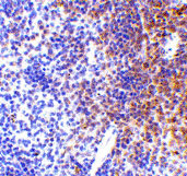 Immunohistochemistry of IRF7 in mouse spleen tissue with IRF7 antibody at 5 μg/mL. |