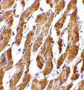 Immunohistochemistry of CRTH2 in human heart tissue with CRTH2 antibody at 2.5 μg/mL.