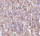 Immunofluorescence of ORAI1 in Human Spleen cells with ORAI1 antibody at 20 μg/mL. |