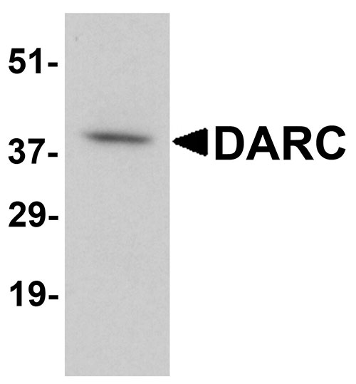DARC Antibody: DARC, also known as the Duffy antigen/chemokine receptor, is a seven-transmembrane protein homologous to the classical chemokine G-protein coupled receptors (GPCRs) with the exception of the motif required for G protein coupling. DARC can bind with high affinity several chemokines without transducing any signal, suggesting it may modulate the signals normally induced by these chemokines. Recently, DARC was found to interact with KAI1, a four transmembrane protein recently identified as a tumor metastasis suppressor protein. It is thought that tumor cells dislodged from the primary tumor and expressing KAI1 interact with DARC proteins expressed on vascular cells, transmitting a senescent signal to the tumor cells, while tumor cells that have lost KAI1 expression can proliferate and potentially give rise to metastases. At least three isoforms of DARC are known to exist.