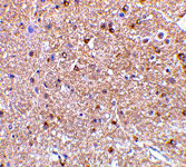 Immunohistochemistry of NogoA in mouse brain tissue with NogoA antibody at 2.5 μg/mL.