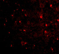 Immunofluorescence of NogoA in Mouse Brain tissue with NogoA antibody at 20 μg/mL. |