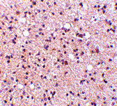 Immunofluorescence of NPAS3 in Human Brain cells with NPAS3 antibody at 20 μg/mL. |