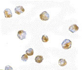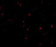 Immunofluorescence of ORAI3 in A20 cells with ORAI3 antibody at 10 μg/mL. |