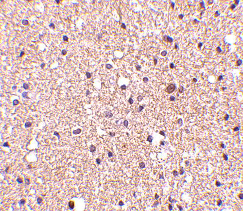 Immunohistochemistry of op18 in human brain tissue with op18 antibody at 2.5 μg/mL.