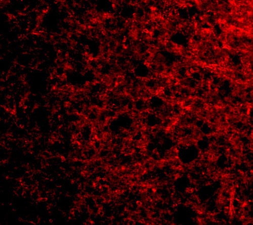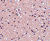 Immunofluorescence of op18 in human brain tissue with op18 antibody at 20 μg/mL. |