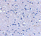 Immunohistochemical staining of human brain tissue using Grik4 antibody at 2.5 μg/mL.