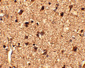 Immunofluorescence of slitrk1 in human brain tissue with slitrk1 antibody at 20 μg/mL. |