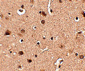 Immunofluorescence of slitrk4 in human brain tissue with slitrk4 antibody at 20 μg/mL. |