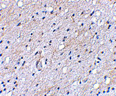 Immunohistochemical staining of human brain tissue using BAP3 antibody at 5 μg/mL. |