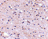 Immunofluorescence of Ambra1 in Human Brain cells with Ambra1 antibody at 20 μg/mL. |