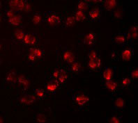 Immunofluorescence of NUP107 in A549 cells with NUP107 antibody at 10 μg/mL. |