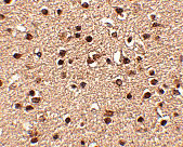 Immunofluorescence of Dact2 in Human Brain cells with Dact2 antibody at 20 μg/mL. |