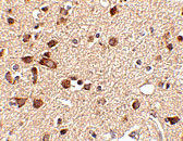 Immunohistochemistry of Stk39 in human brain tissue with Stk39 antibody at 2.5 μg/mL. |