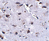 Immunohistochemistry of RCAN2 in mouse brain tissue with RCAN2 antibody at 2.5 μg/mL.